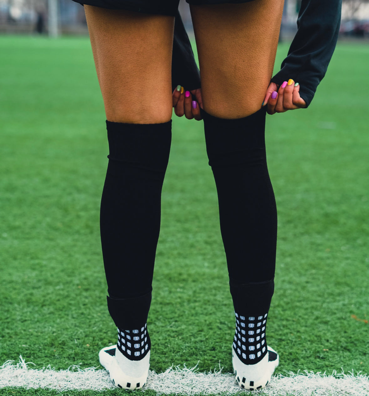 The Grip Sock Leg Sleeves are 15 inches in length and stretch to also maintain comfort for your shin guards and calves.