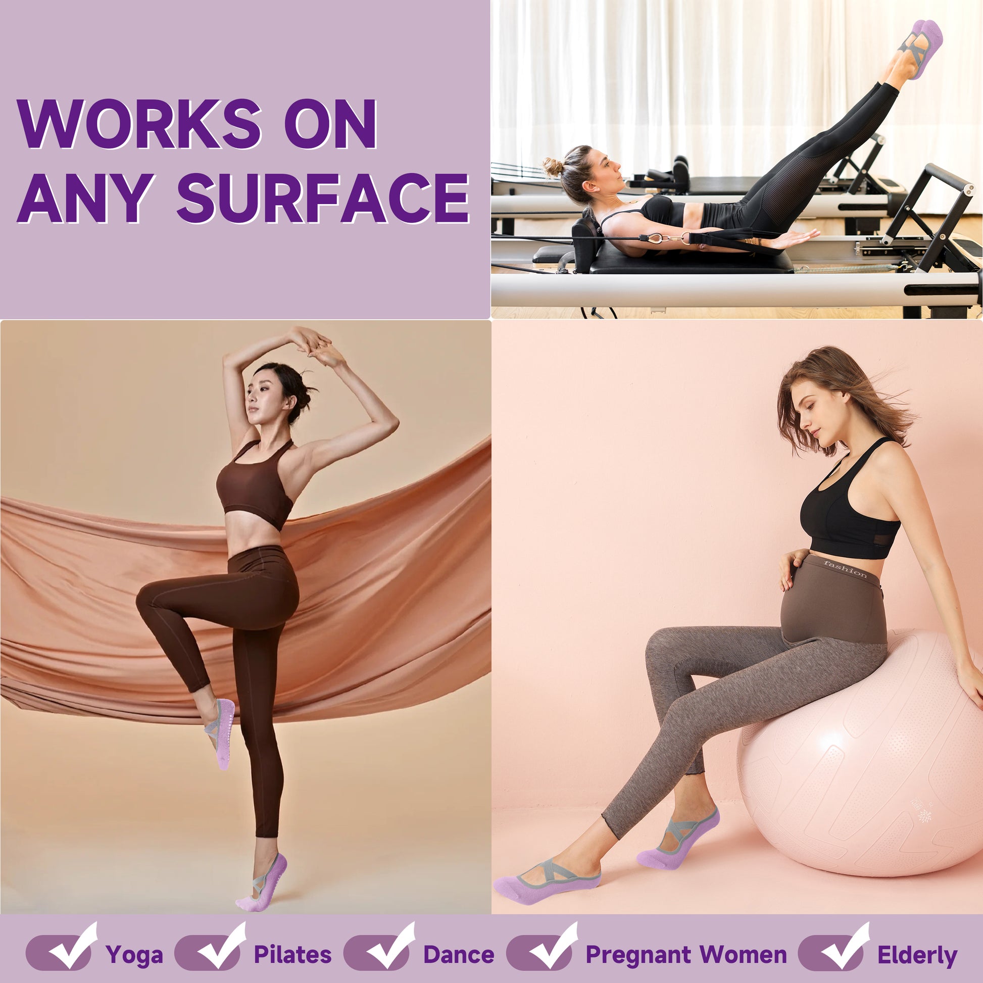 Feel more connected to your body with every step. These socks eliminate foot sliding on studio floors, so you can move with total confidence and focus. Perfect for pilates, yoga, dance, barre, and even everyday wear for added stability.